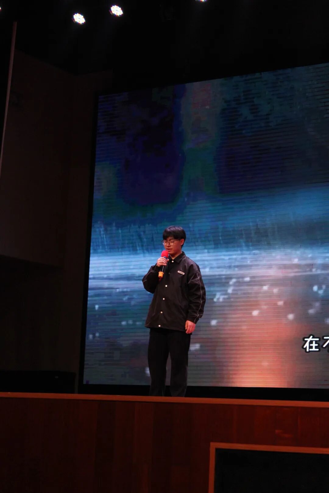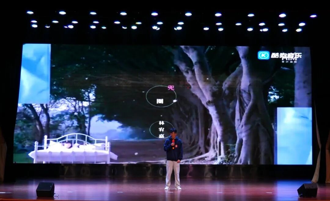 大家好 我是来自机器人二班的罗嘉宇。非常感谢能有这样一个展示自我的机会,能够站在这样的一个舞台上,我感到很高兴而且很紧张,能够把自己歌唱的快乐与大家分享我很荣幸。我不知道自己唱得怎么样?但是无论怎么样,我会不断努力,坚持下去。只有坚持,才是最后赢家!