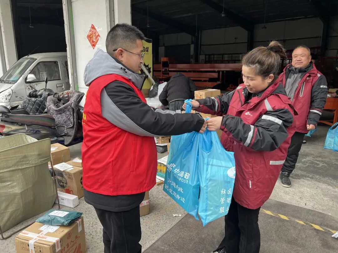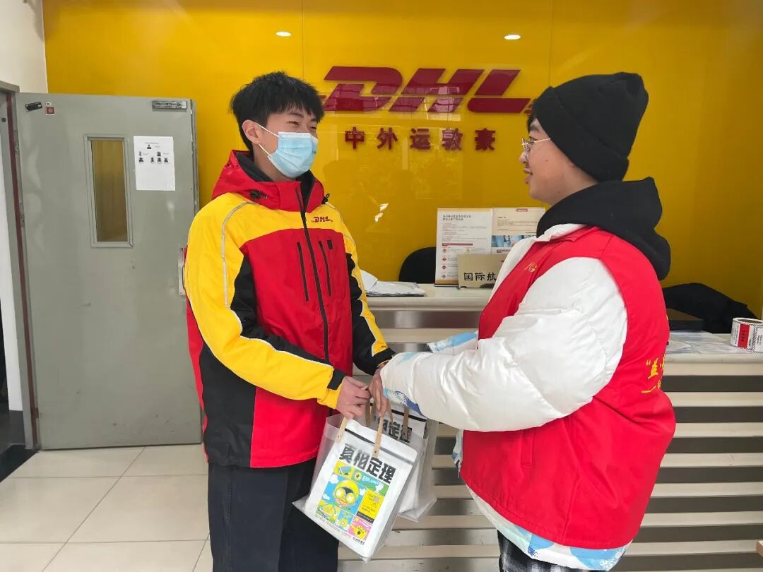 下午跟随社区工作人员开展慰问工作,为新业态快递小哥送上一个个暖心的慰问礼包。