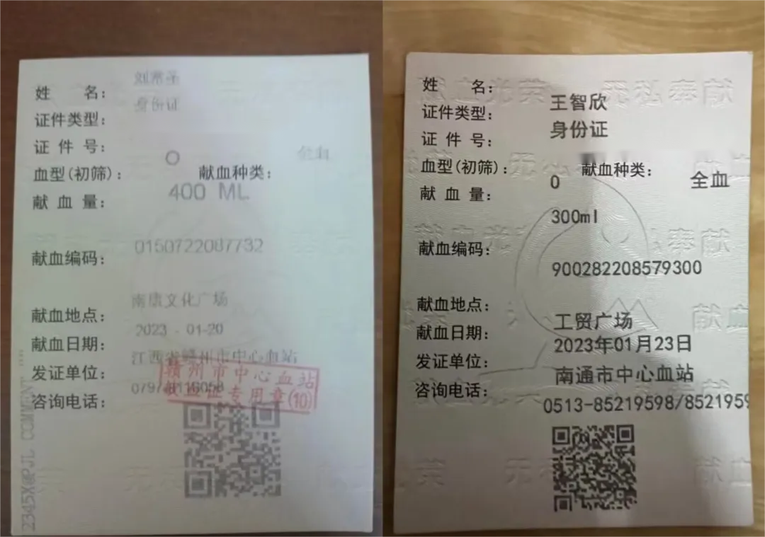 22级机器人二班刘常圣同学、22级机电四班王智欣同学的志愿献血。