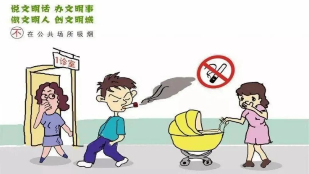 第一、公共场所不吸烟。身体是革命的本钱,健康是宝贵的财富。不在教学区、宿舍、食堂、图书馆等场所吸烟,以实际行动践行文明健康绿色生活方式。敢于向“二手烟”说不,争当爱国卫生运动志愿者、控烟劝导员和监督员,主动劝阻他人不在禁烟场所吸烟。从自己做起,从现在做起,带头远离烟草,共建洁净、和谐、宜居无烟环境,共享快乐、幸福、健康生活。