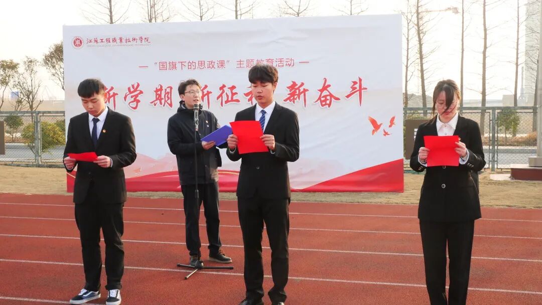 3月6日清晨,智能制造学院大学生在海门校区操场举行“新学期,新征程,新奋斗”——国旗下的思政课主题教育活动。