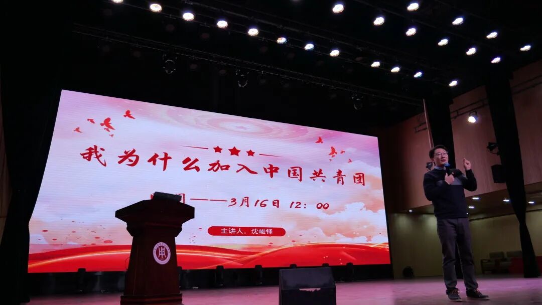 智能制造学院团总支书记沈峻锋以《我为什么加入中国共青团》为题,带领大家追忆入团初心。
