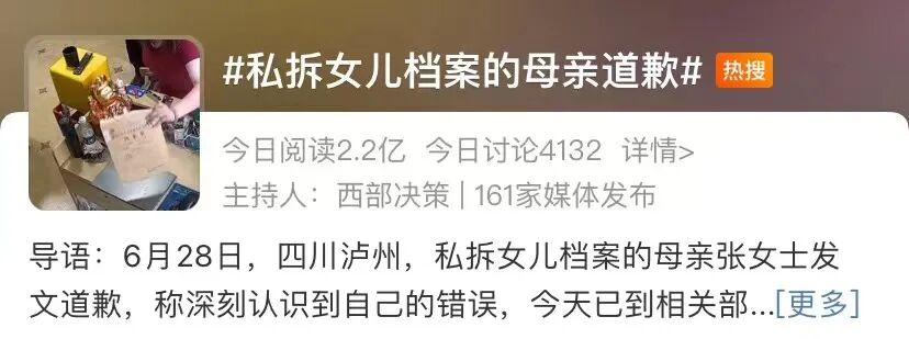#私拆女儿档案的母亲道歉#的话题