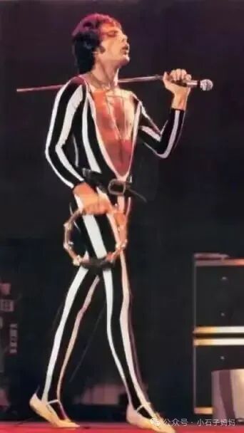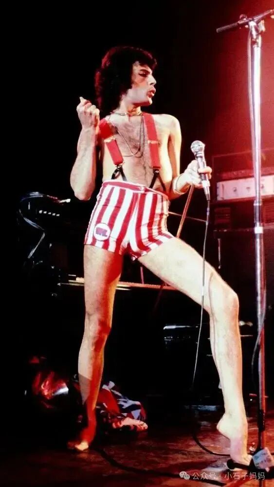 在1981蒙特利尔演唱会上,他赤膊上阵,身穿一条齐臀小短裤,胸前佩戴一条红领巾,激情献唱。