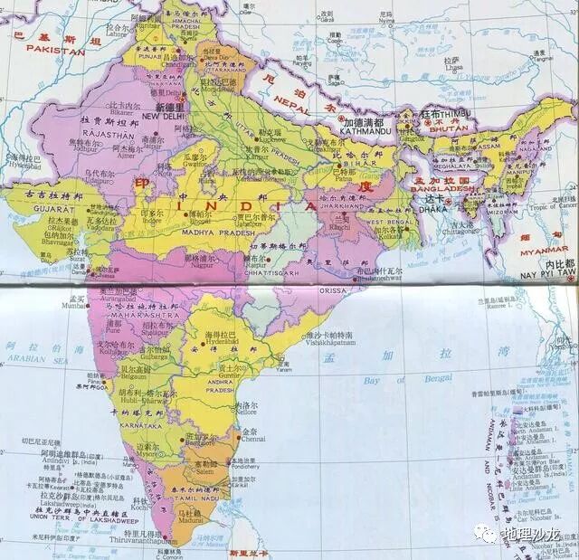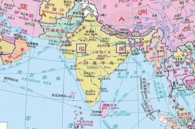 印度是印度共和国的简称,位于亚洲的南亚地区,面积为298万平方公里,是南亚地区最大的国家,首都新德里。印度国土分为东西两部分,东北部区域面积较小,与孟加拉国、缅甸、中国、尼泊尔和不丹接壤,西部主体部分面积较大,西北部与巴基斯坦接壤,北部与中国接壤,印度的连片国土仅以宽约几十公里的西里古里走廊相连。印度东南临孟加拉湾,西南临阿拉伯海,印度半岛深入北印度洋,是北印度洋地区最主要的国家。