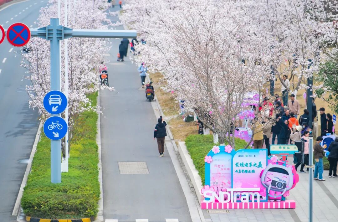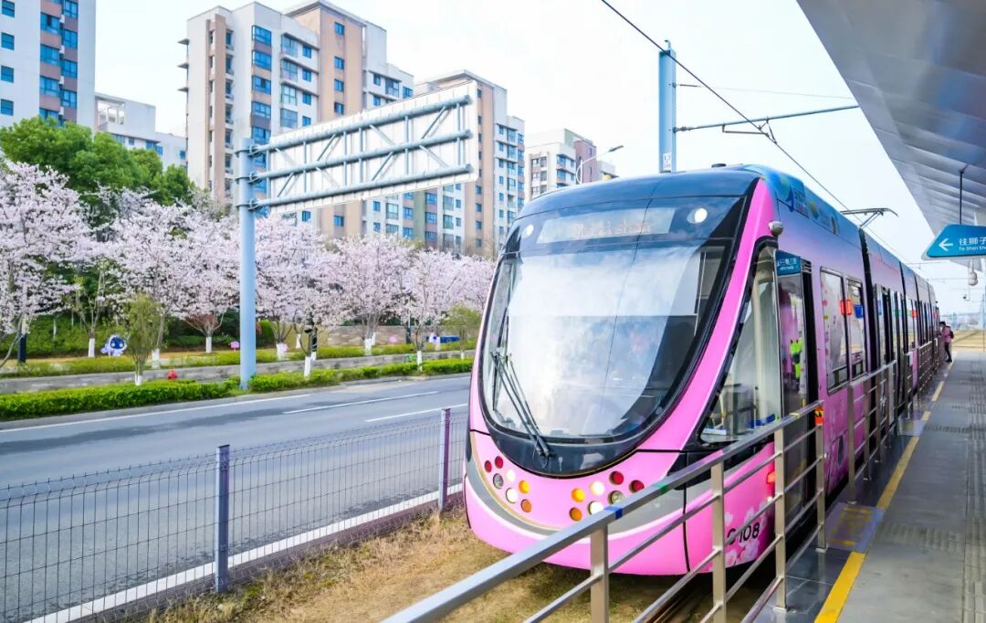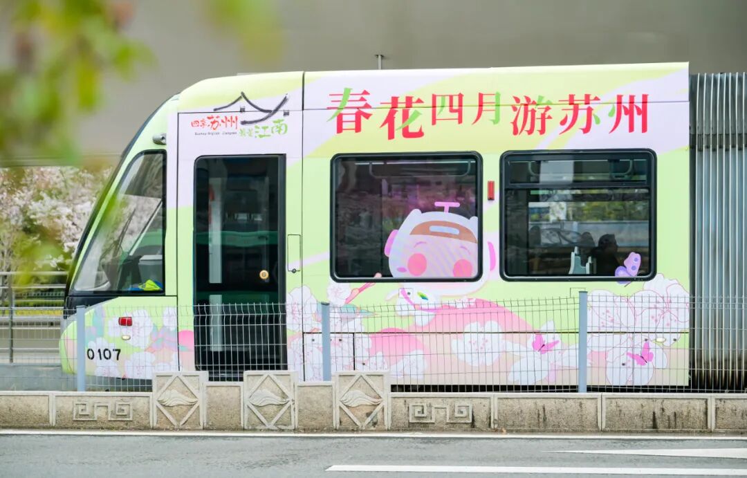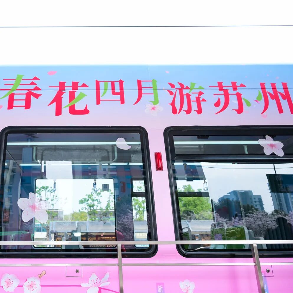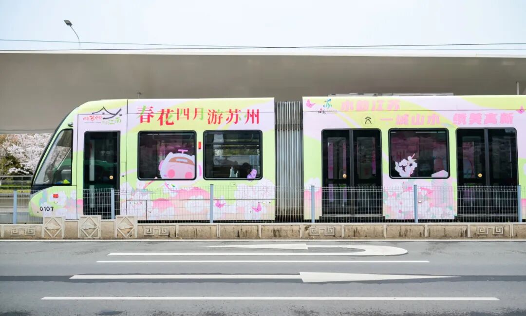 苏州高新有轨电车两列樱花主题列车也于近期上线,活动搭乘的1号线樱花电车专列自狮子山站启程,途经白马涧、樱花大道等重要赏花点位,最终抵达赏樱佳地秀岸站,将赏花之旅和趣味打卡巧妙融合,一路“发现电车之美”。