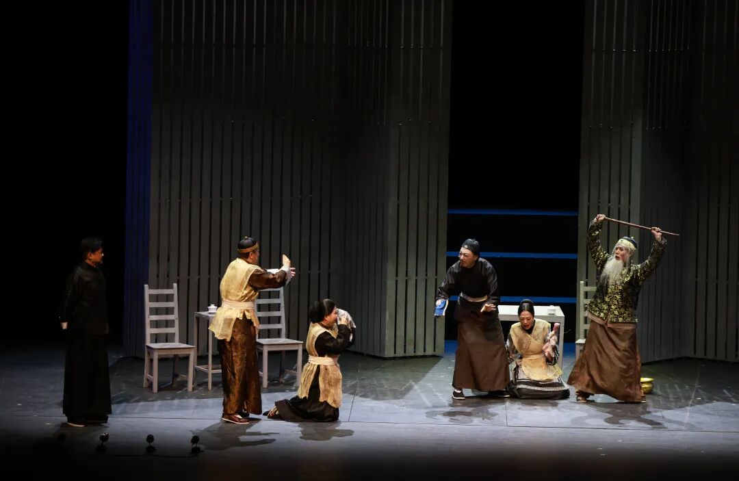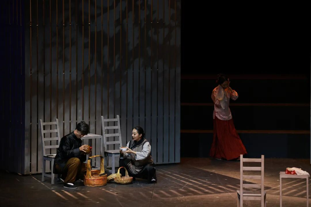 许鞍华的《金锁记》沿用了许多电影的叙事风格和表现手法:节奏明快,舞台风格化。在舞台处理上,许鞍华选择了简约“留白式”的舞美呈现,简洁利落的舞台,白色的藩篱留给观众无尽的想象。许鞍华说,没有了布景、环境的限制,舞台上的自由度可以更大——从实到虚再到实,“有着更自由的空间”。