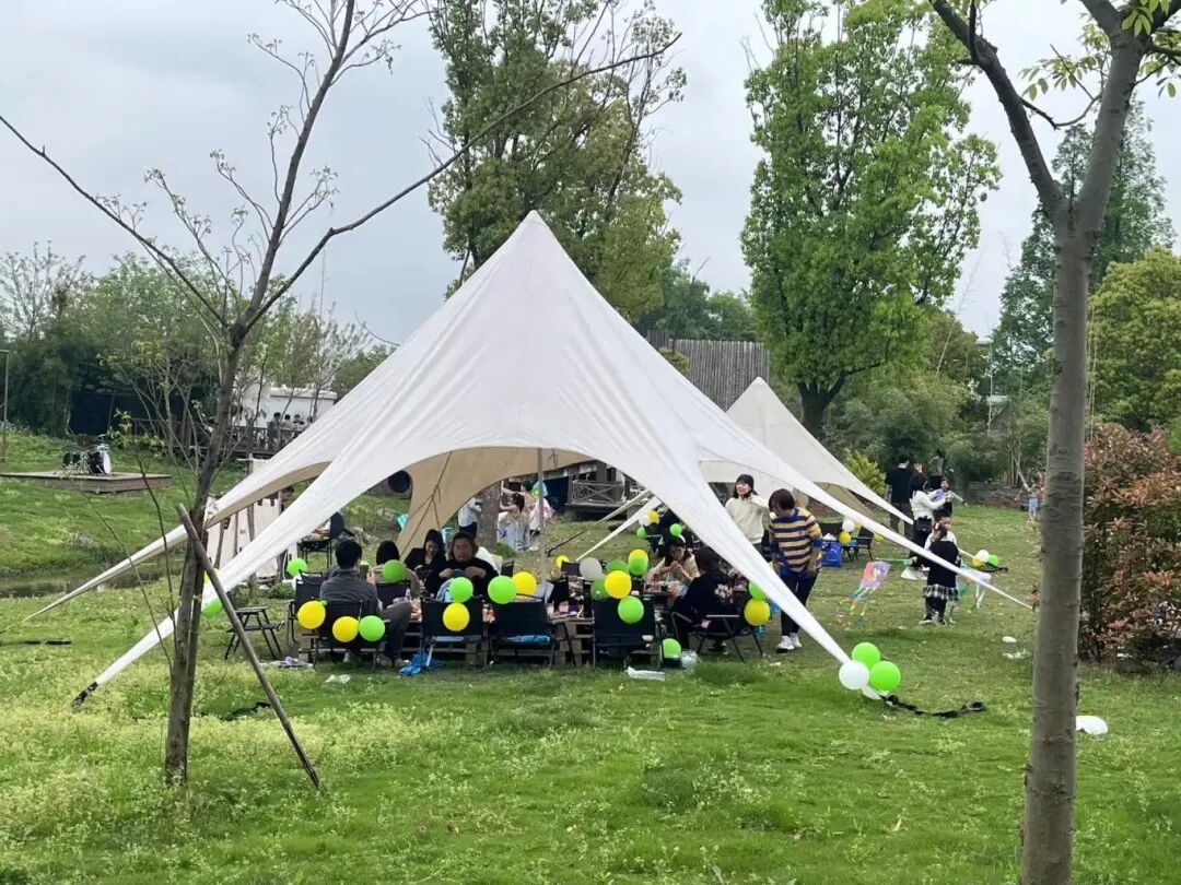 市民游客徜徉在茵茵草地,在帐篷下与家人朋友分享难得的假日悠闲时光。