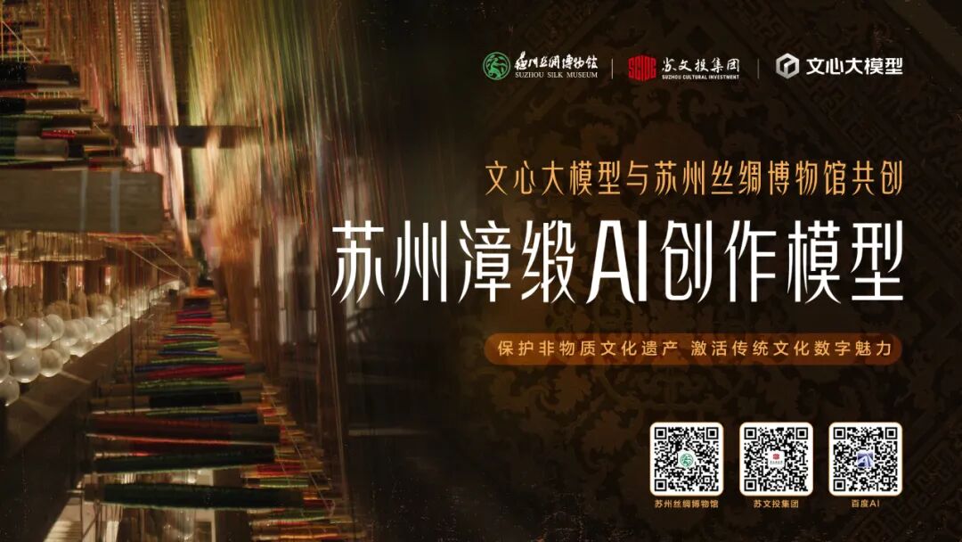 大会期间,百度文心大模型与苏州丝绸博物馆、苏州文化投资发展集团宣布共创“苏州漳缎AI创作模型”,用AI技术助力守护与传承省级非物质文化遗产“苏州漳缎织造技艺”。