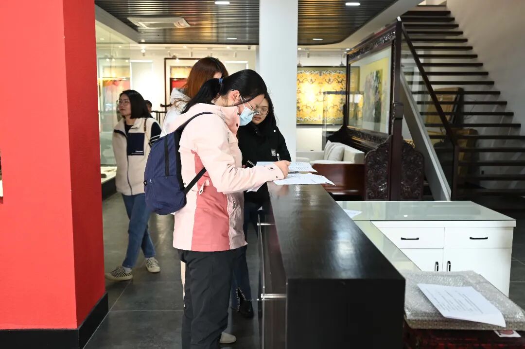 “接下来的课程,老师带我们上实践课,亲自体验缂丝工艺,老师将所有材料都准备好了,我们只需要去上课就行,这一点非常贴心。课上老师也很温和耐心,一点点教我们基础的手法和工艺,有问题都帮我们及时指出,非常体贴。”