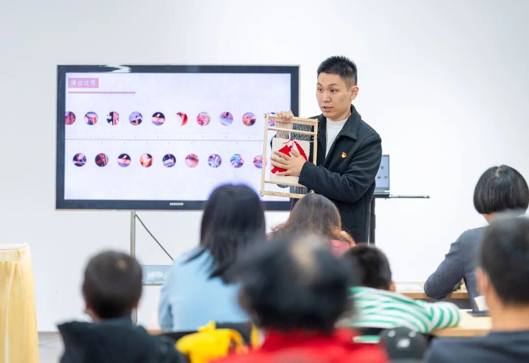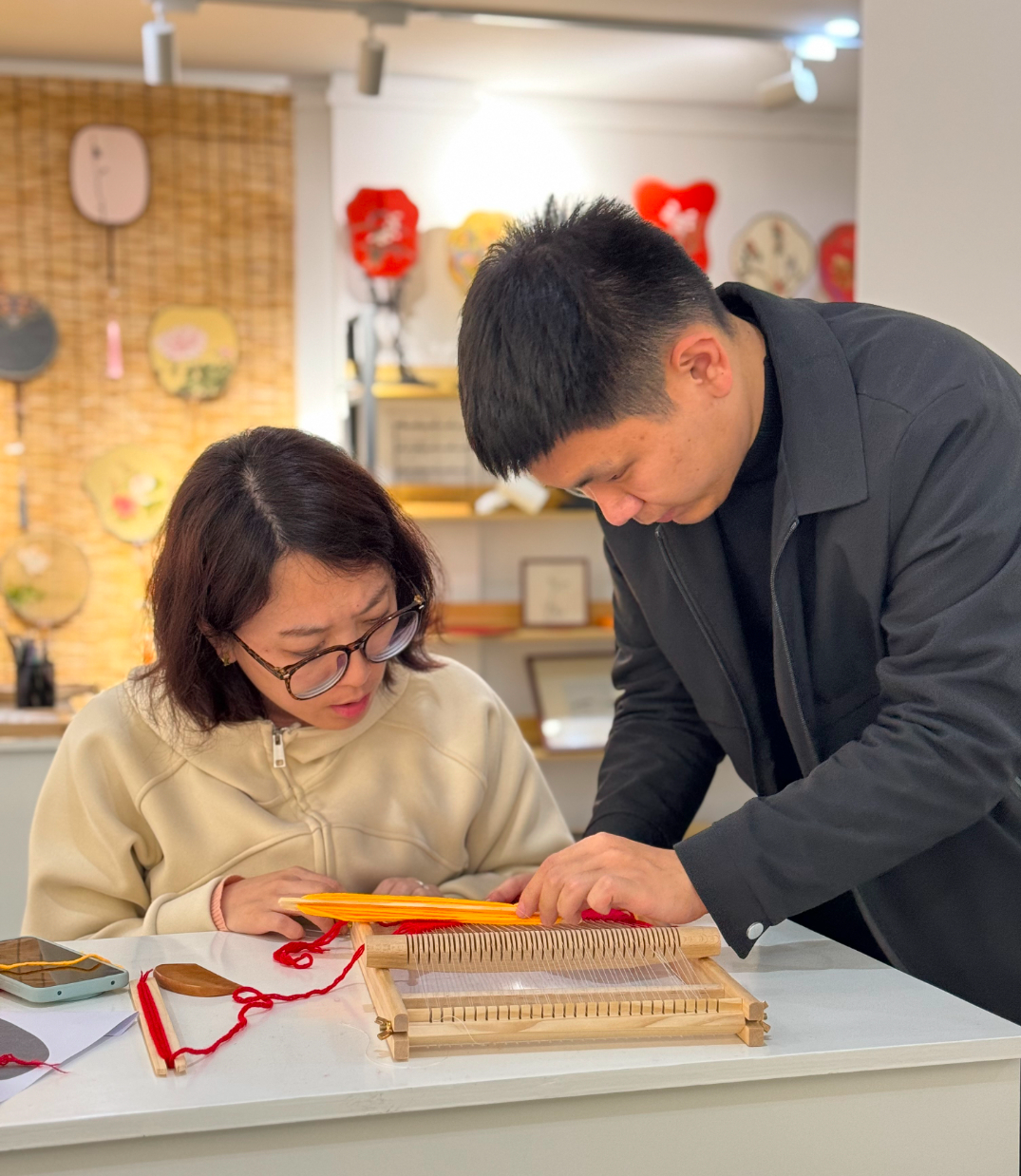 “我为大家设计了12课时的缂丝学习计划,全部都在我们非遗工作室内上课,从第一堂课参观缂丝作品展,到讲解缂丝技法,让大家亲手触摸缂丝,了解缂丝工具,从零开始,制作一个属于自己的缂丝作品,带领大家能‘身临其境’,融于缂丝环境,希望大家能获得一个更加深入、全面的非遗体验。“