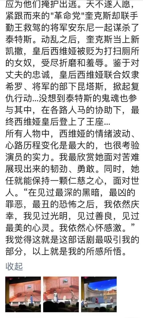 一个以罗马为背景的略架空的话剧,大反派的台词功底太强了,太有实力了,其他人的演技也超级棒,这种不用抢票就能看到的话剧太赚了!
