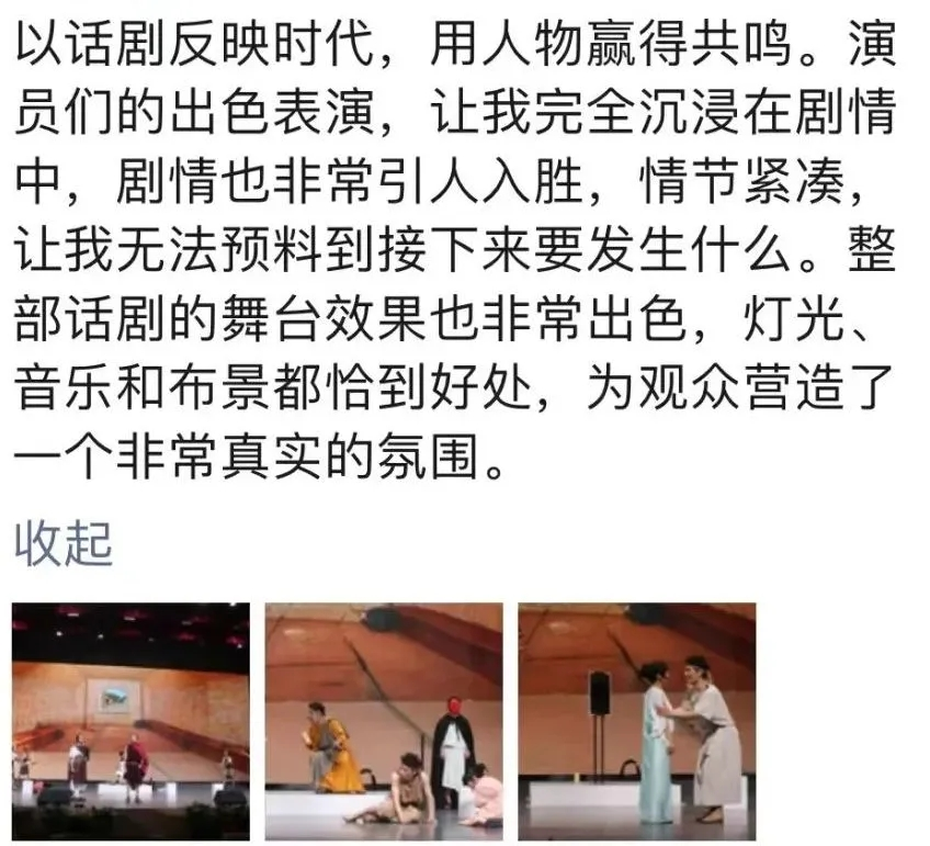 演出结束,很多观影的同学纷纷感慨“第一次观看话剧,原来这么震撼,演员声情并茂地把自己带入情境,情绪随着剧情发展而波动。”以下是部分观后感: