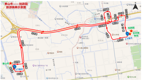 注:寒山寺上下客点:寒山寺停车场;拙政园上下客点:齐门路东侧苏州博物馆北侧。