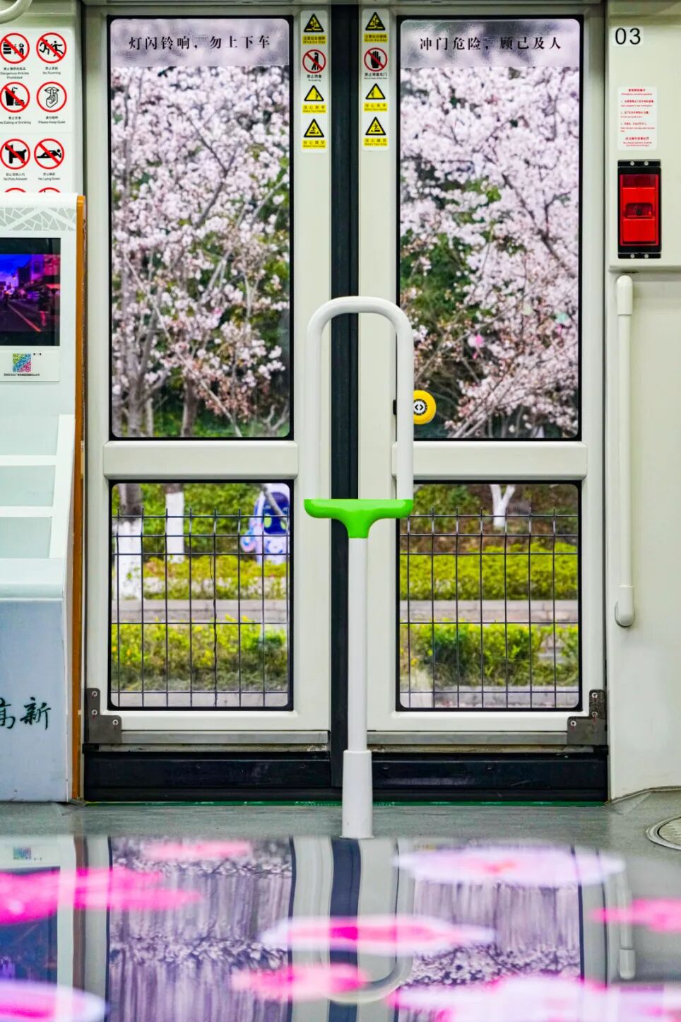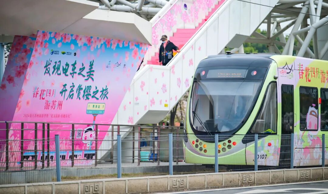 1号线樱花电车专列自狮子山站启程,途经白马涧、樱花大道等重要赏花点位,最终抵达赏樱佳地秀岸站,将赏花之旅和趣味打卡巧妙融合,一路“发现电车之美”。