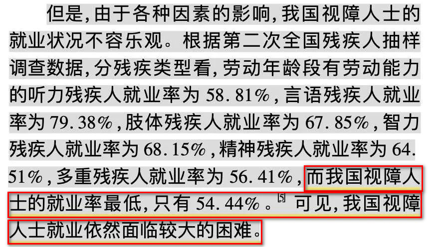 (来源:《新形势下的中国视障人士就业问题研究》)