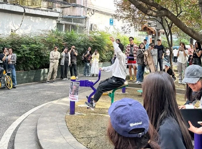没想到,这支极为“抽象”的MV意外地爆火,还让MV拍摄地点,成都玉林七巷的一处公共健身区域,成为了网红打卡点。