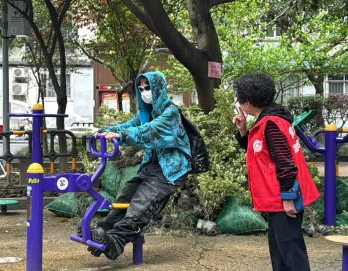 为了让大家“文明打卡”,当地社区直接派出了志愿者在现场维持秩序。
