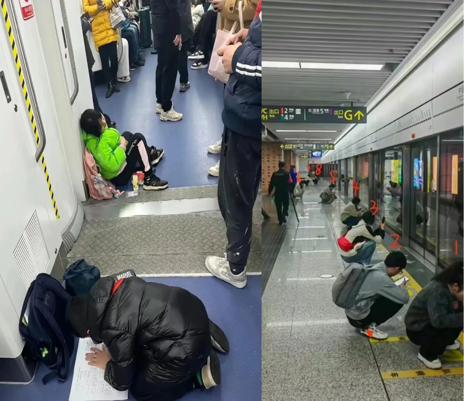 而像是在地铁上席地而坐的操作,则有种“不顾别人死活的美”。