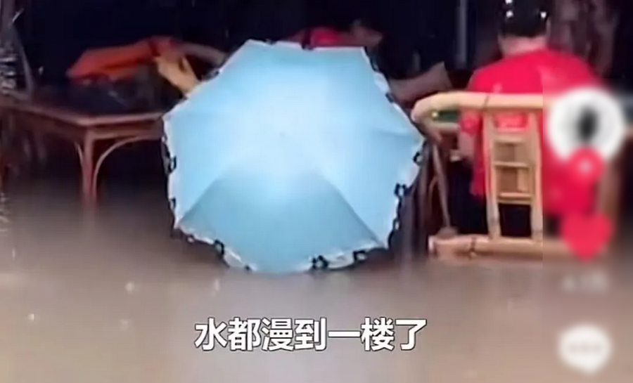 即使屋里都快被水淹了,他们依旧能面不改色地搓着麻将。