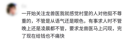 还有一户人家,死乞白赖要跟龙兽医砍价,最终少给了100块钱,还对龙兽医说:“你这下发财了。”
