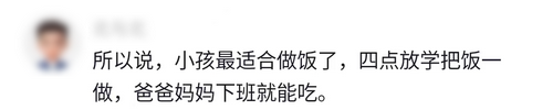 看到他们认真做饭的样子,网友直呼:“我就说嘛,让孩子做饭最合理,幼儿园4点放学,放学之后买菜做饭,爸妈6点下班,正好吃饭。”