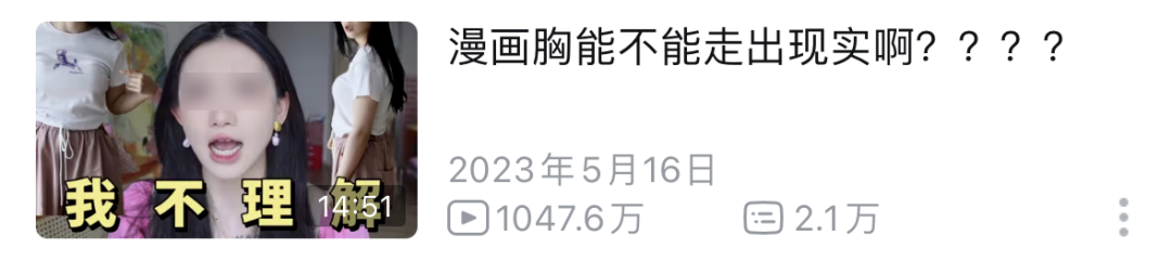 也正是“敢说”这个特点,让她成功创造出了《漫画胸能不能走出现实啊????》这一破千万播放量的爆款视频,并收获了不少女性粉丝。