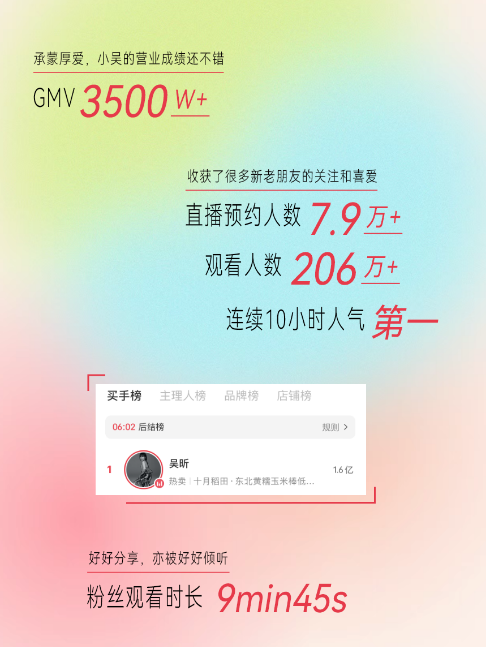 整场直播下来,她总共创造了超过3500万元的销售额,仅次于章小蕙和董洁,成为了小红书明星买手天团的TOP3。