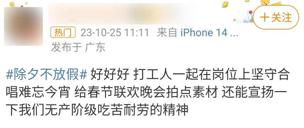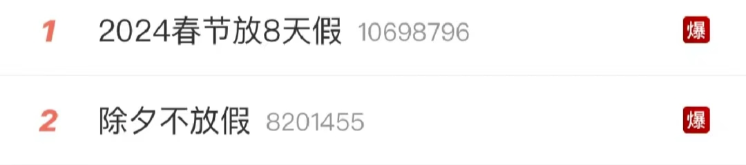 果不其然,#除夕不放假#的话题很快登上热搜。