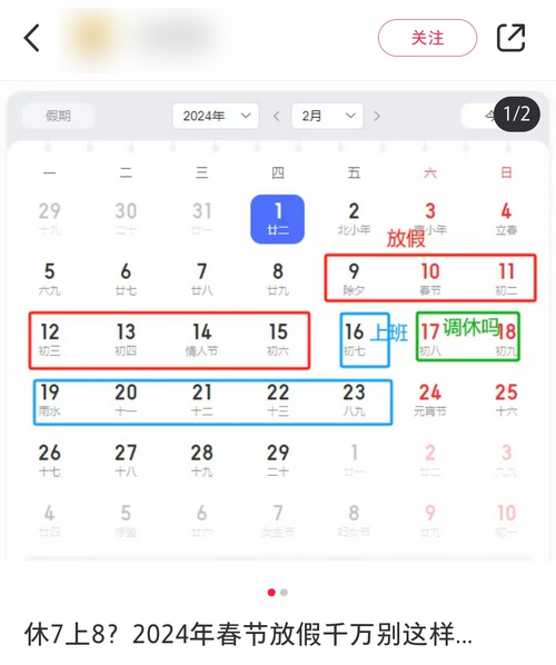 据说是网友根据日历上的时间推测,2024年春节将从除夕放到大年初六,如果初七上班,周末两天补班的话,将连续上8天班。