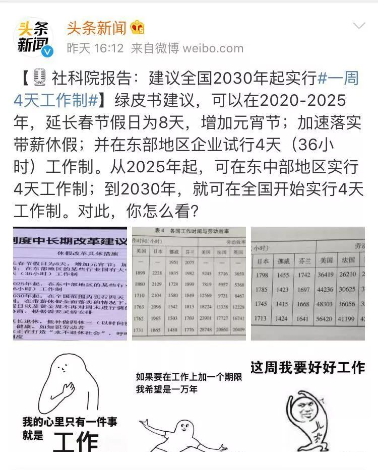 如果“四天工作制”在国内试行的效果不错,那么后续在全国大范围推广“四天工作制”也将成为可能。