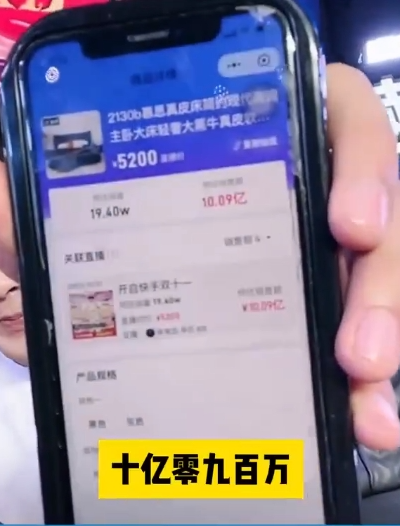 10月21日,辛巴直播间售卖的某品牌床,已付定金的产品销售量达到19.4万张,预估最终销售额超过10.09亿元。