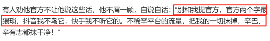 看得出来,辛巴并不是想要在抖音平台发展,而是想跟抖音“对着干”,为自己“抱不平”。