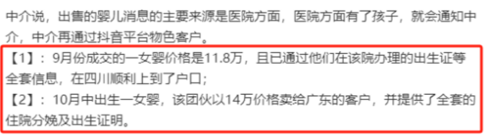 据上官正义曝光,该团伙还涉嫌售卖婴儿,男女婴价格都在10万以上。