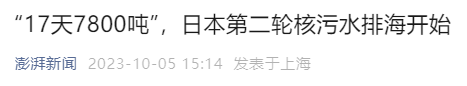 事实上,10月5号,日本已经正式开始排放第二批次福岛核污水了,这次排放预计持续17天,排放量与第一批次大致相同,仍为7800吨左右。