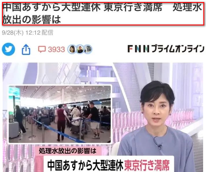 9月28日,日本富士电视台播出了这样一则新闻:中国明天开始放长假,飞往东京的航班满席,核污水排放的影响呢?