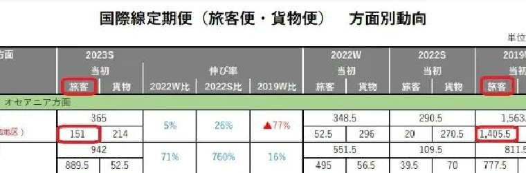 据日本国土交通省公布的“2023年夏季执航计划”显示,最近几个月日本与中国之间的往来载客航班每周只有一百多个,而在2019年,航班的数量是每周一千四百多个。