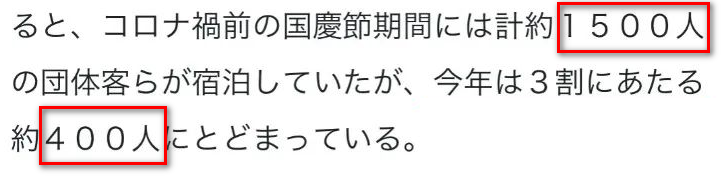文中还提到,京都某知名宾馆,19年国庆节长假接待了约1500名中国游客,但今年只有约400名中国游客入住。