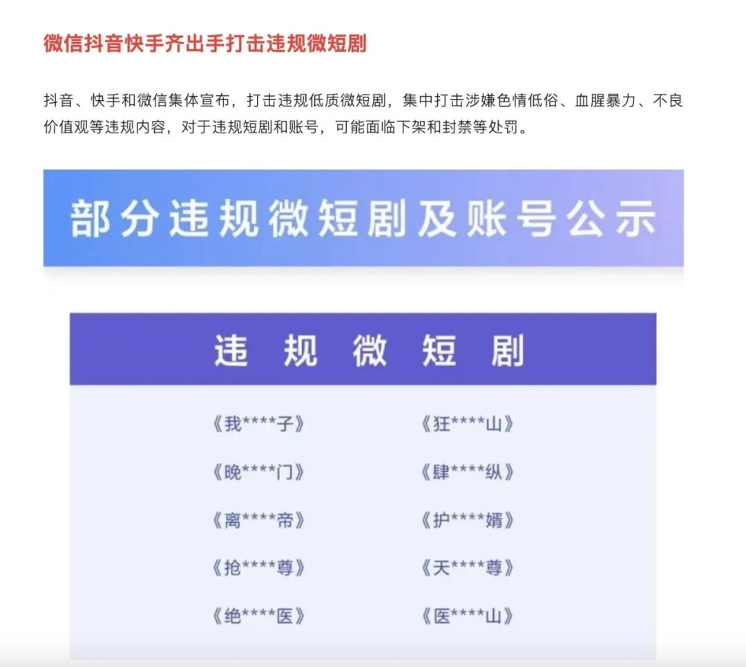 值得一提的是,随着大量粗制滥造、内容违规的短剧出现,官方开始整治短剧行业的乱象。