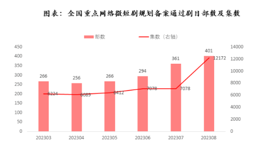 根据国家广播电视总局网络视听司公布的数据显示,光是今年8月,就有401部短剧通过备案。