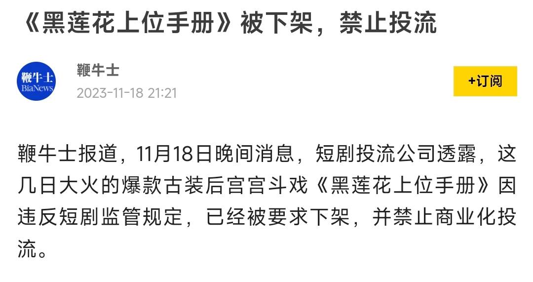 起猛了,唐唐居然刷到了咪蒙投资短剧《黑莲花上位手册》被下架的消息。