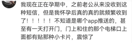 曾有博主曝光,不法分子会利用大数据,精准定位孕期妇女及其伴侣,向其发送色情短信、擦边视频和按摩店广告,企图诱导他们出轨。