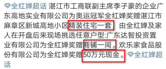 不少企业为了奖励全红婵,向她赠送了住宅、商铺、现金……