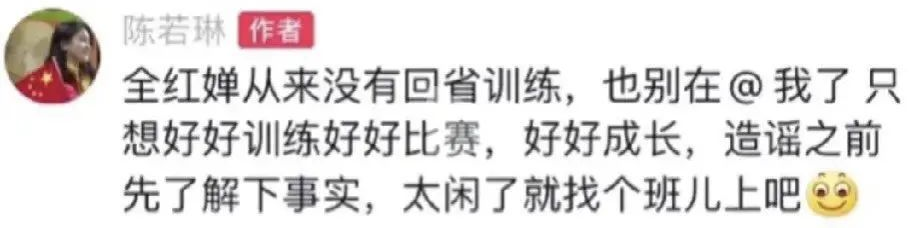 谣言在网上大肆传播,网友的嘲笑声不断,直到全红婵的主管教练陈若琳站出来辟谣,网友才消停下来。