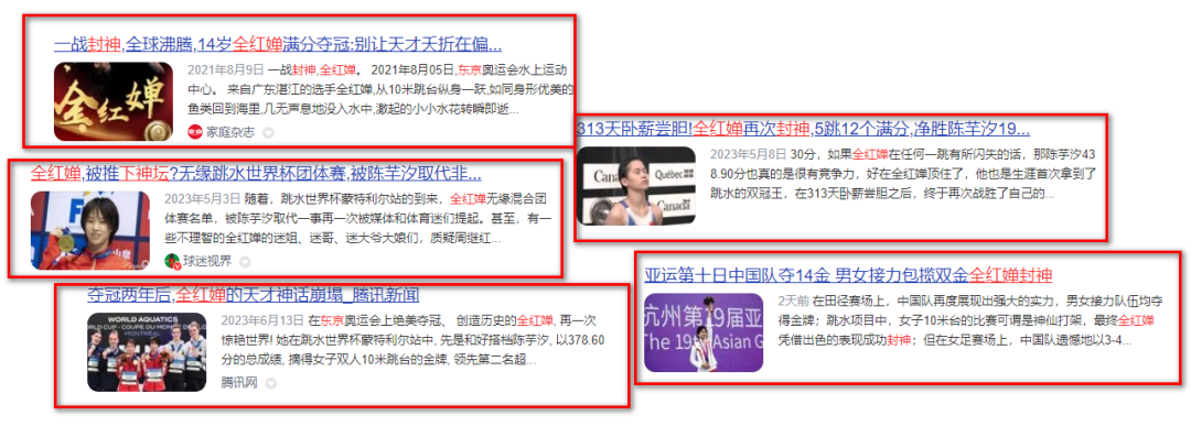 当我们搜索“全红婵”三个字时,可以找到许多前后两极反转的报道,这些报道不禁让人疑惑,为什么会出现这些情况?