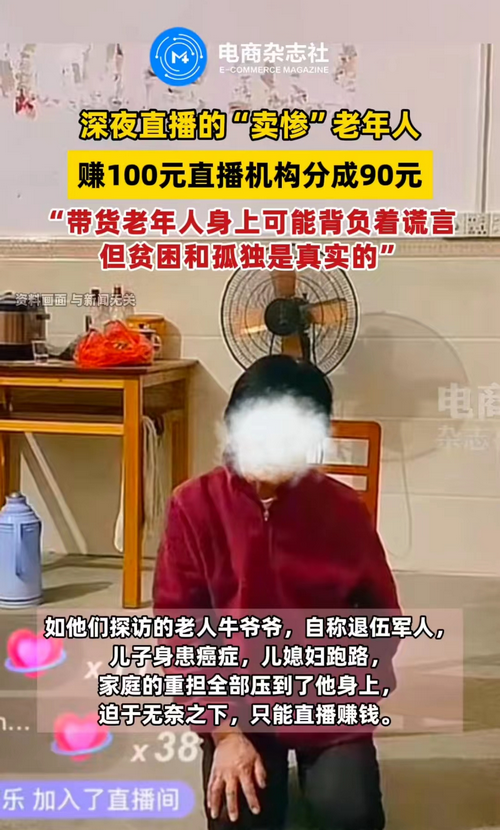 这些深夜直播的老人大抵都是因为家境贫寒、亲人重病、子女弃养、负债累累等原因,不得不直播谋生。