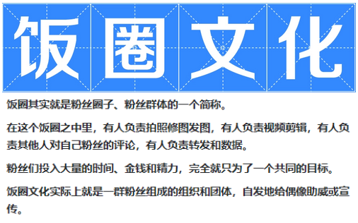 饭圈文化,实际上就是一群粉丝组成的组织和团体,自发地给偶像助威或宣传。
