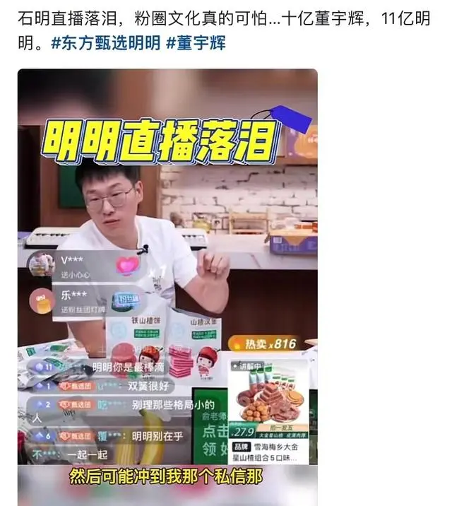 东方甄选主播石明就被骂哭过,以至于不得不在直播途中突然下播。