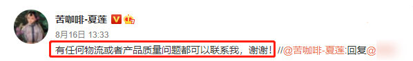 并且对于所售商品的物流、质量问题,她也愿意积极负责。