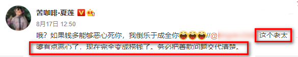 在江秋莲直播期间,不乏“黑粉”质疑她为了“恰烂钱”,无视产品的质量。